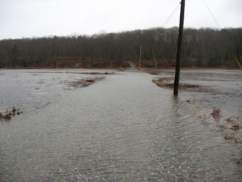 The flooded access road