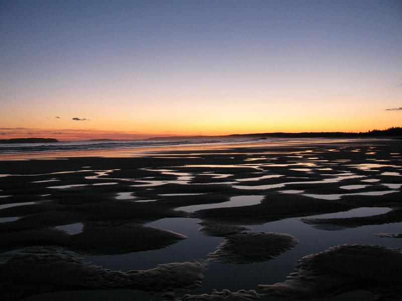 Puddles on the beach after sunset